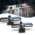 Install in direct sunlight for optimal charging. Choose clip-on for tents or temporary setups, or use wall mount for permanent placement. The light automatically turns on at night when motion is detected and turns off at dawn.