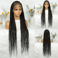 Keywords: braided lace front wig, long box braids wig, black synthetic wig, braided wig for women, realistic hairline wig, protective style wig, 36-inch lace wig