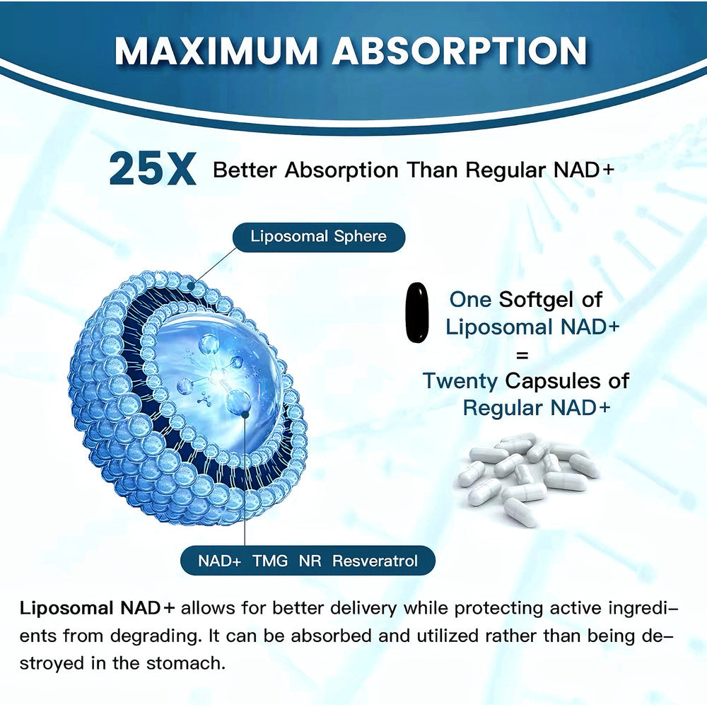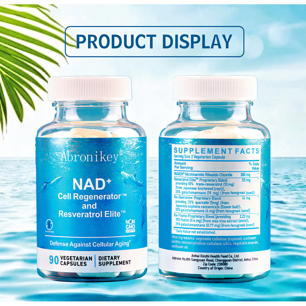 Abronikey NAD Cell Regeneratorand Resveratrol Elite - Nads Niacinamideriboside Supplement - With Trans-resveratrol, Quercetin - Energy,Focus- 90Capsules Dietary