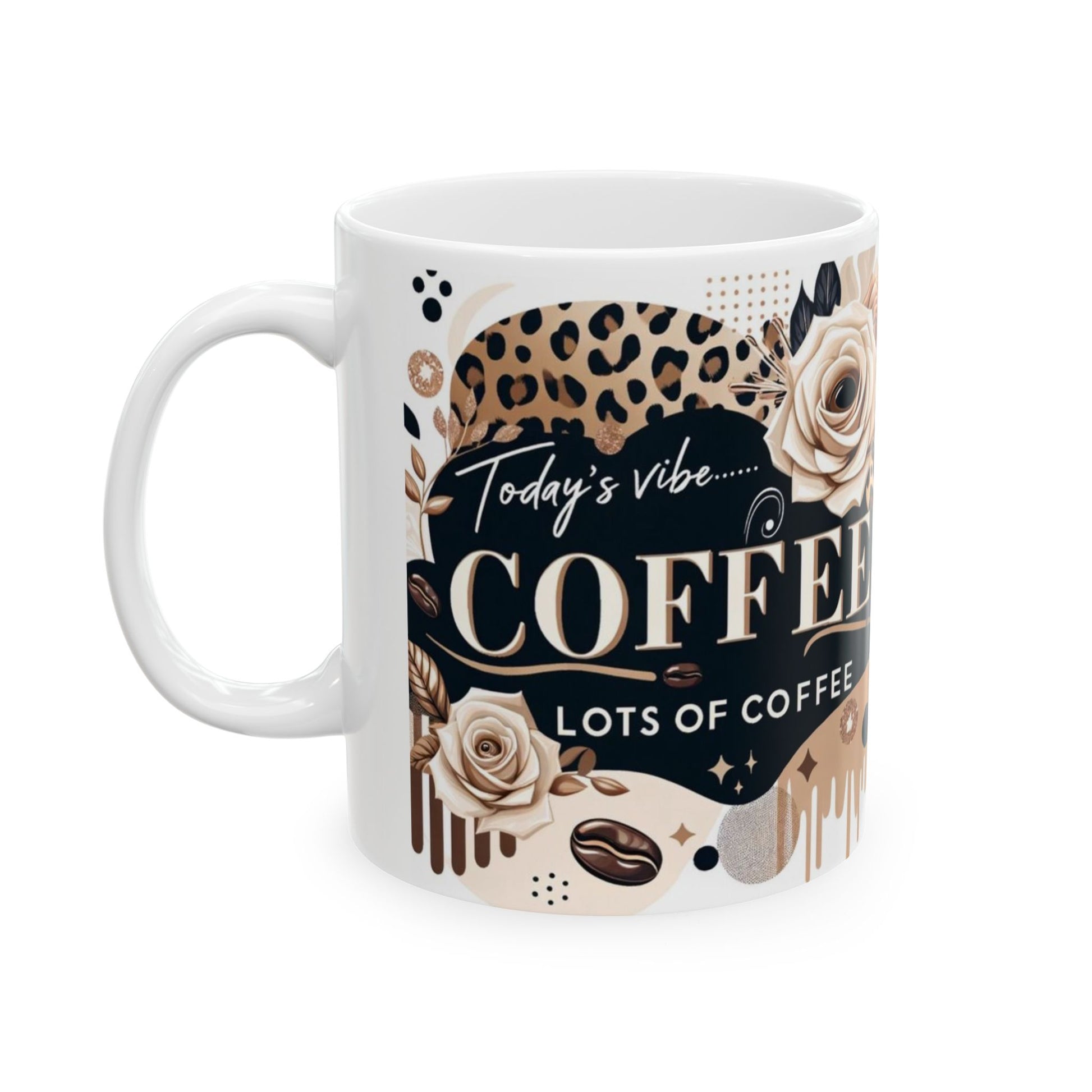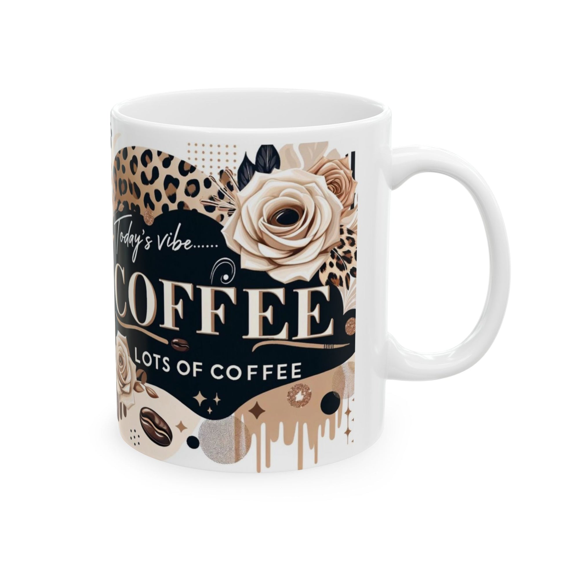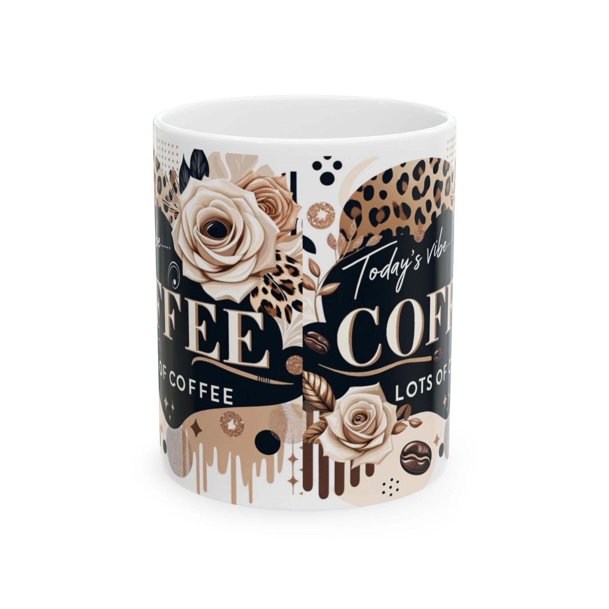 Chic Coffee Mug with Floral and Leopard Print Design, Cute Gift for Coffee Lovers, Ideal for Birthdays, Anniversaries, or Just Because