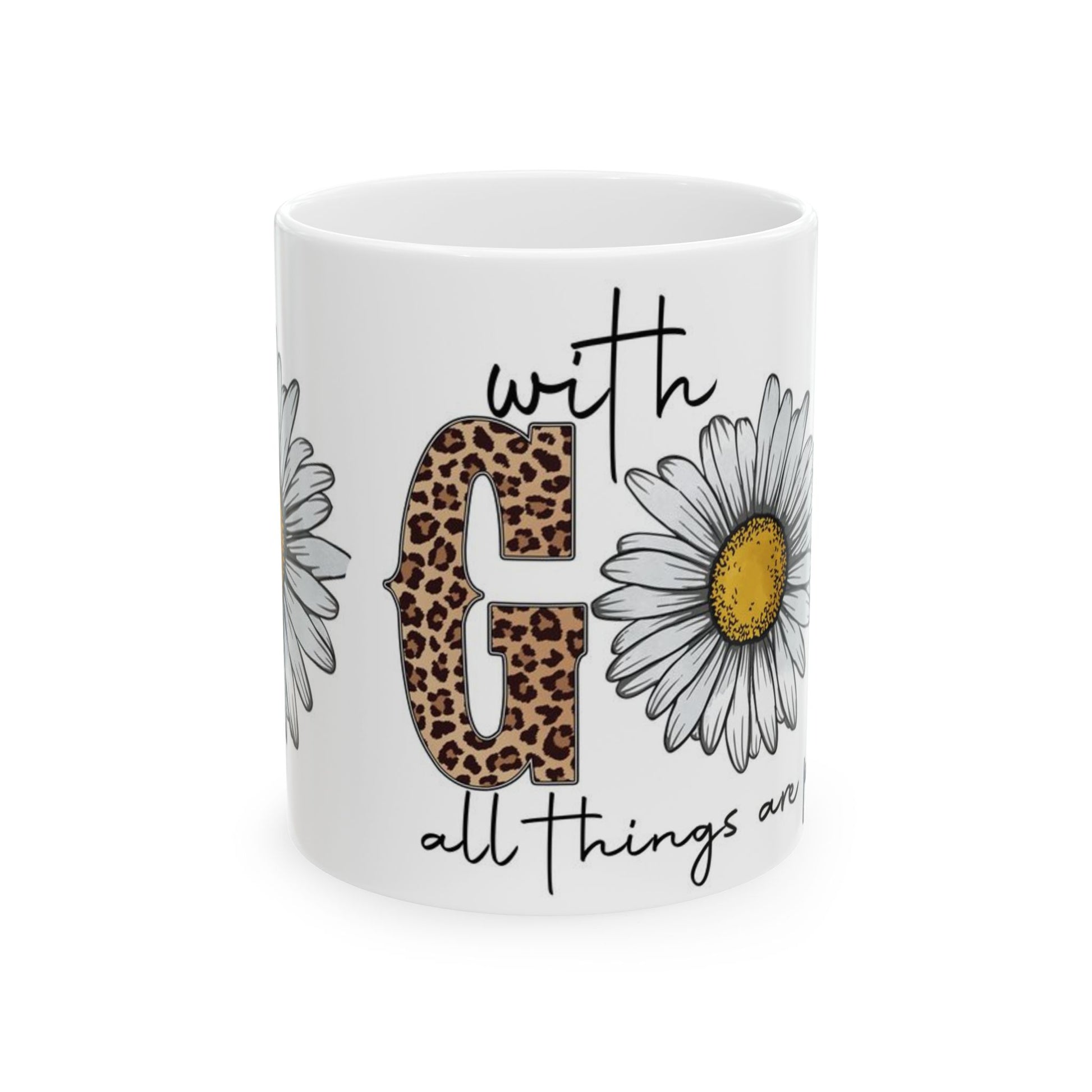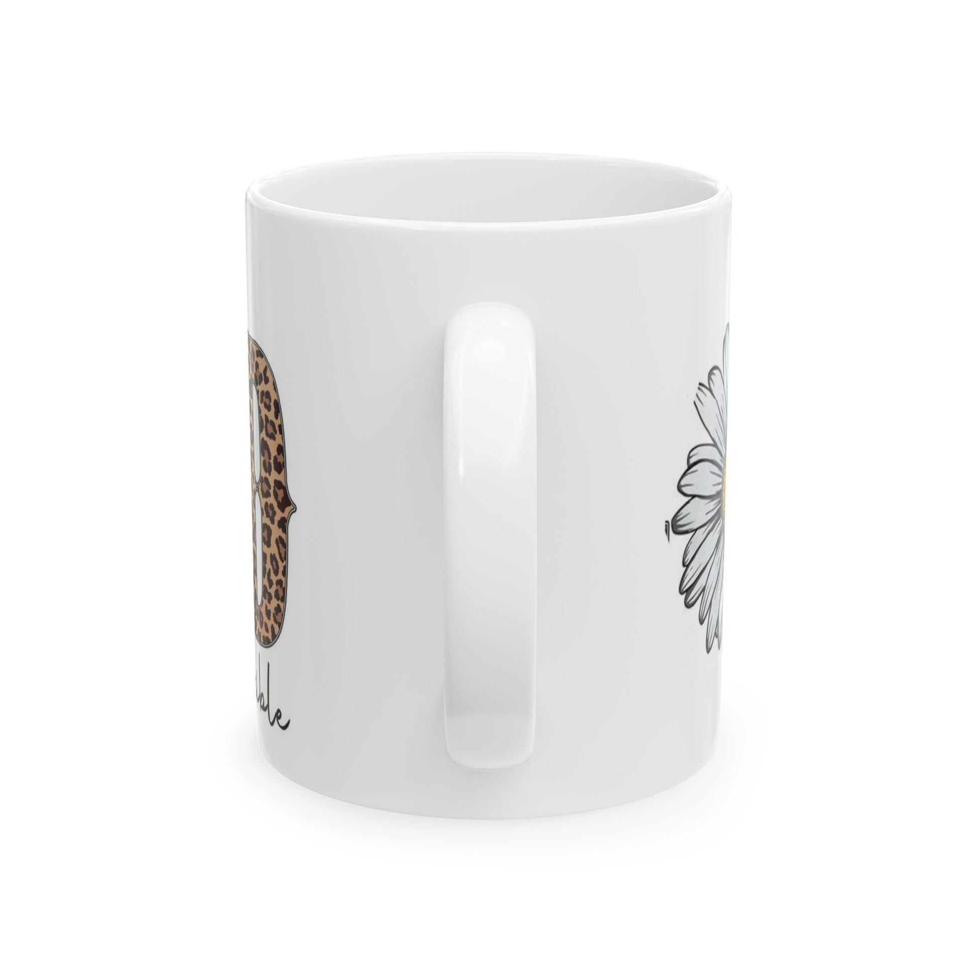 Daisy and Leopard Print Motivational Mug, Inspirational Coffee Cup, Floral Tea Mug, Cute Gift for Her, Home Office Decor