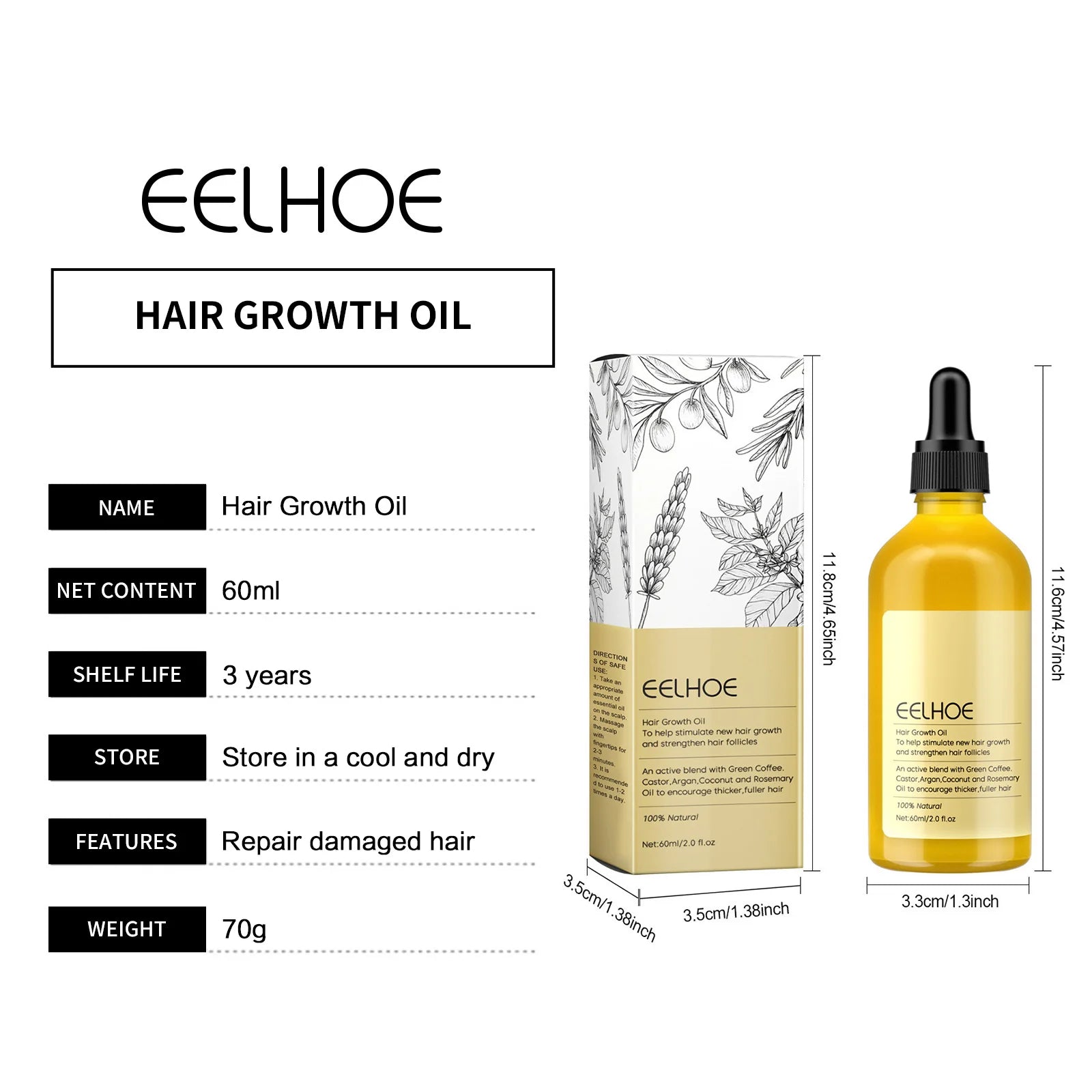 EELHOE Rosemary Essential Oil Repair Damaged Hair Smoothing Treatment Anti Baldness Scalp Treatment Nourishing Hair Growth Oil