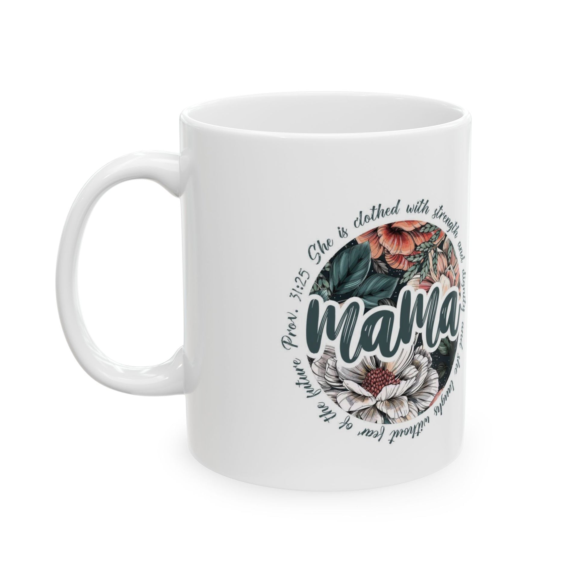 Floral Mama Ceramic Mug, Gift for Mom, 11oz 15oz, Inspirational Coffee Cup, Mother's Day, Birthday, Mom's Tea Mug