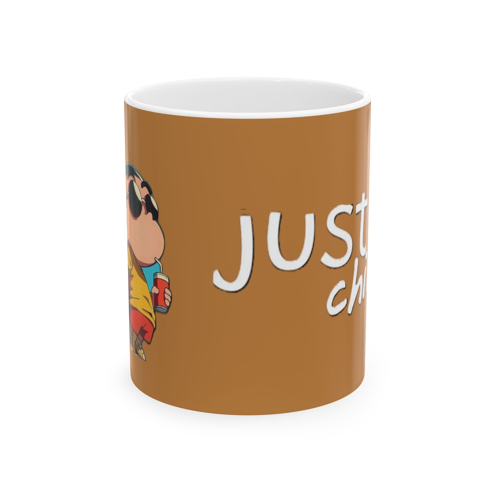 Funny Cartoon Ceramic Mug - Just Chill, Gift for Friends, Cute Coffee Cup, Fun Home Decor, Relaxing Beverage Mug