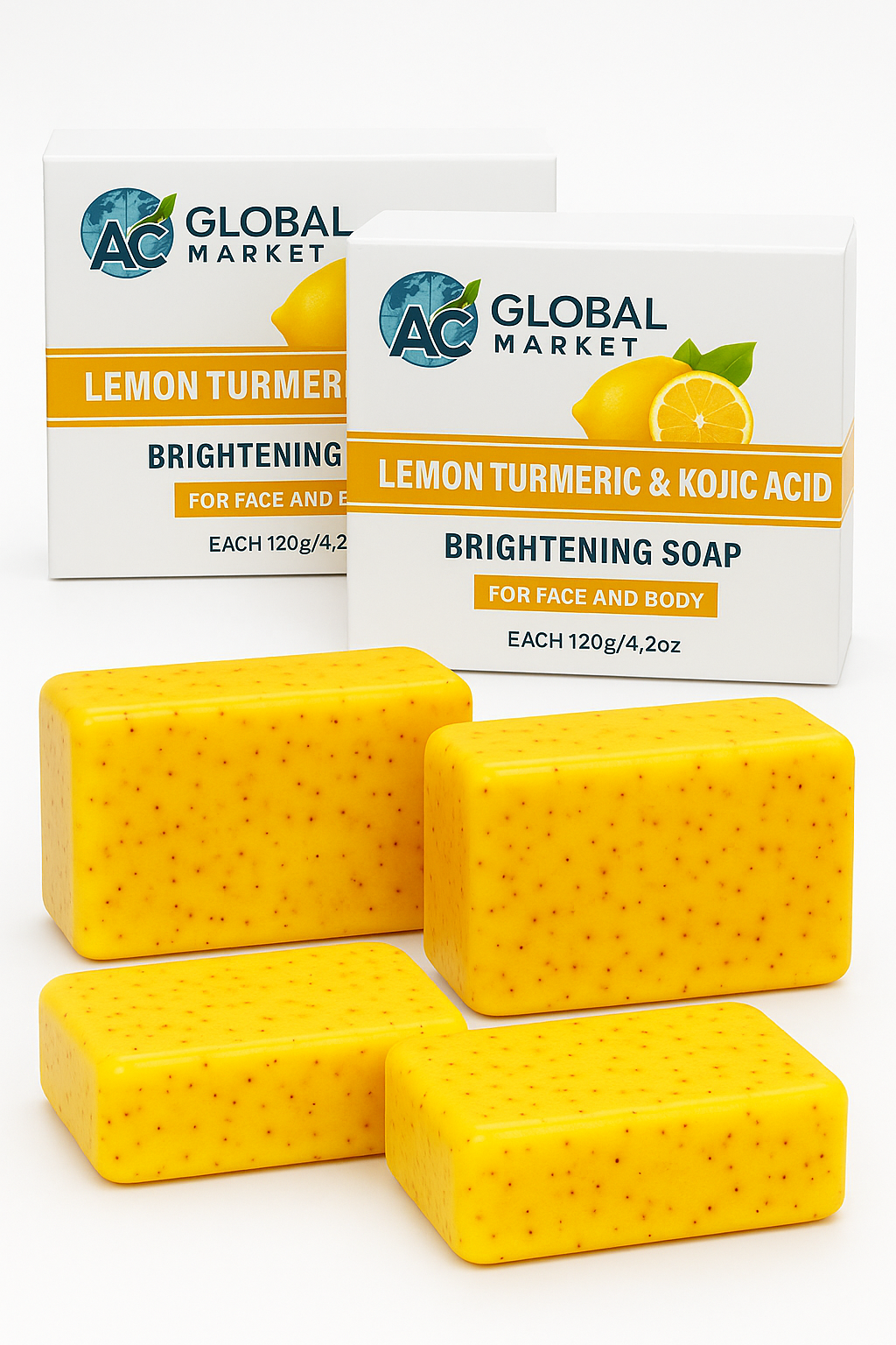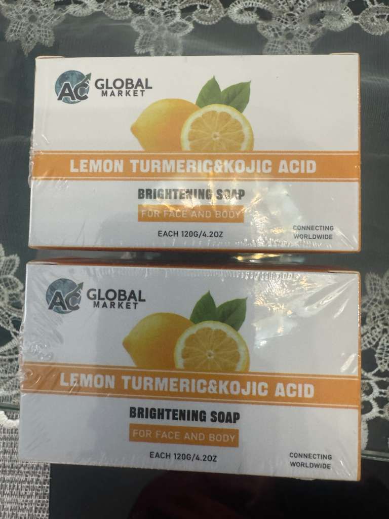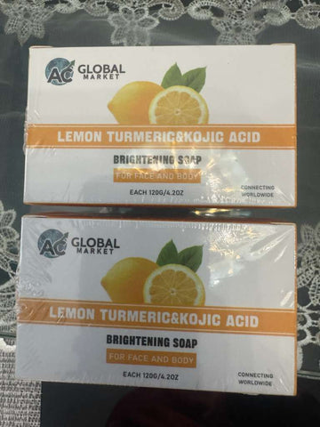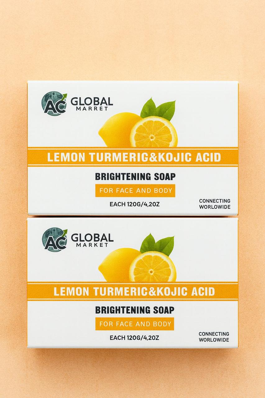 AC Global Market Lemon Turmeric & Kojic Acid Brightening Soap – 4 Bars Set (Face & Body)