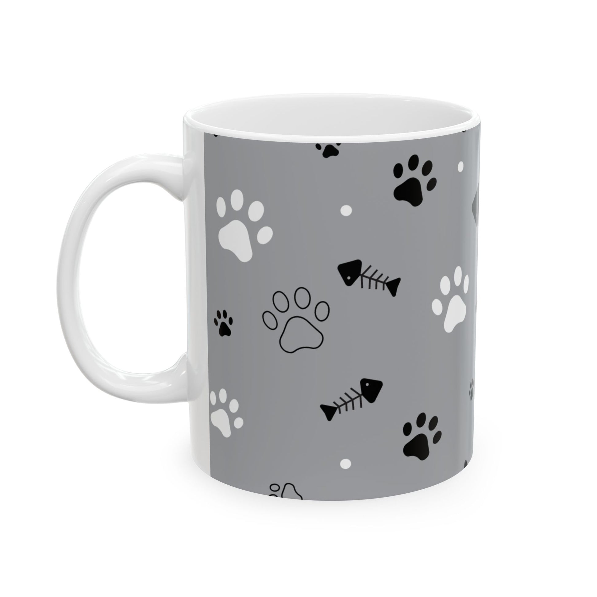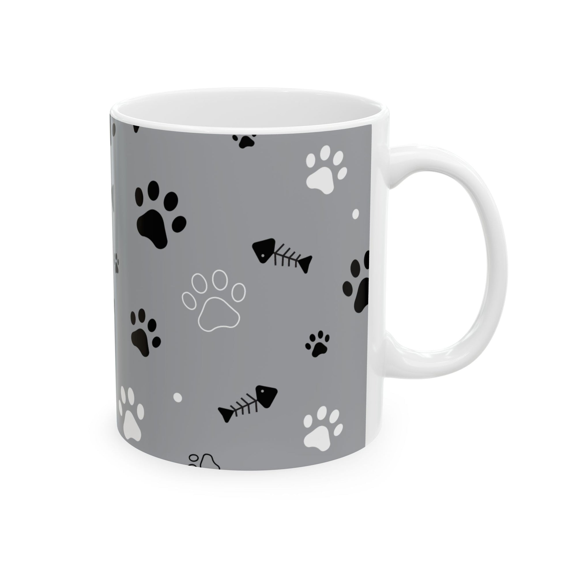 Paw Print Ceramic Mug, Cute Pet Lover Gift, Dog Cat Coffee Cup, Animal Themed Drinkware, Fun Kitchen Decor