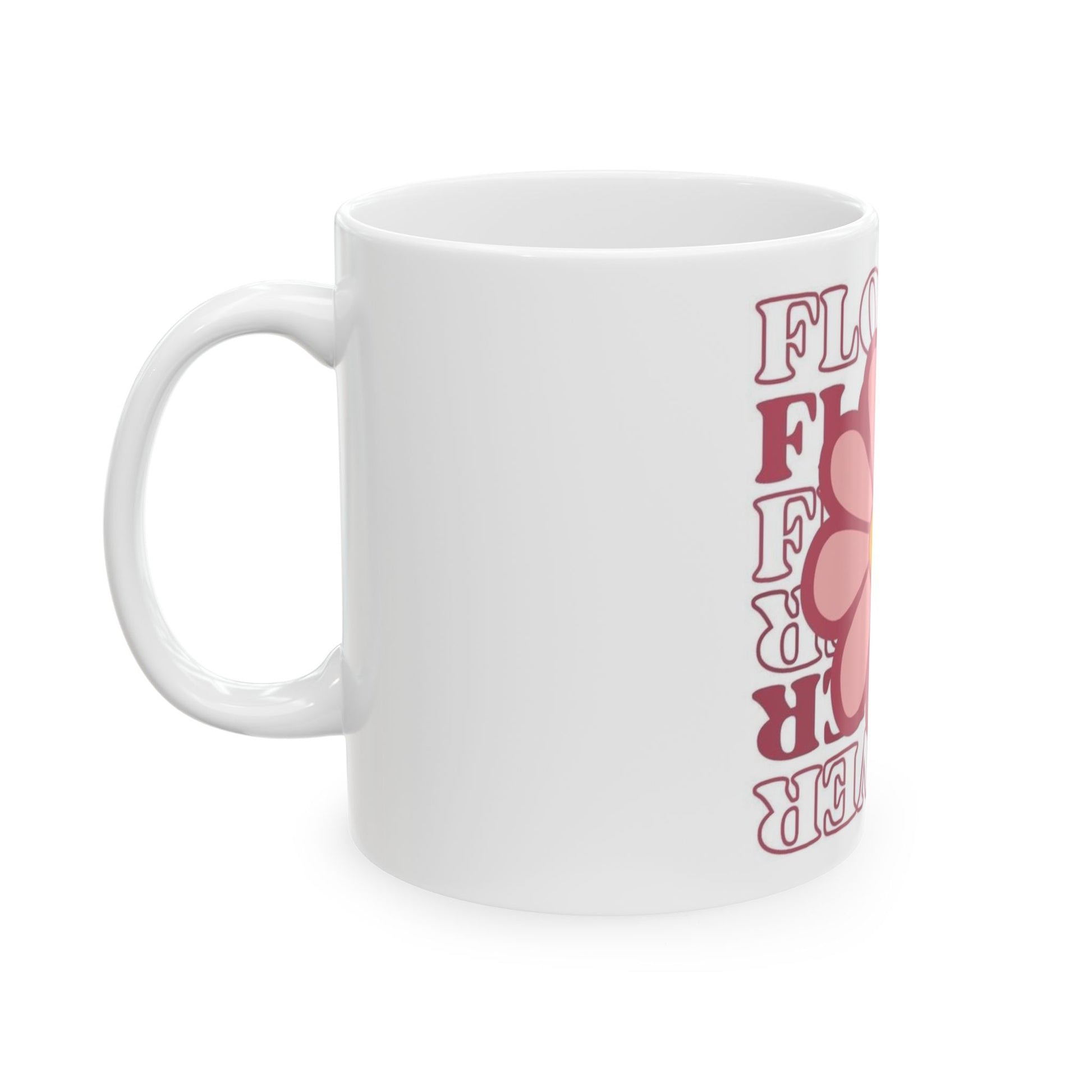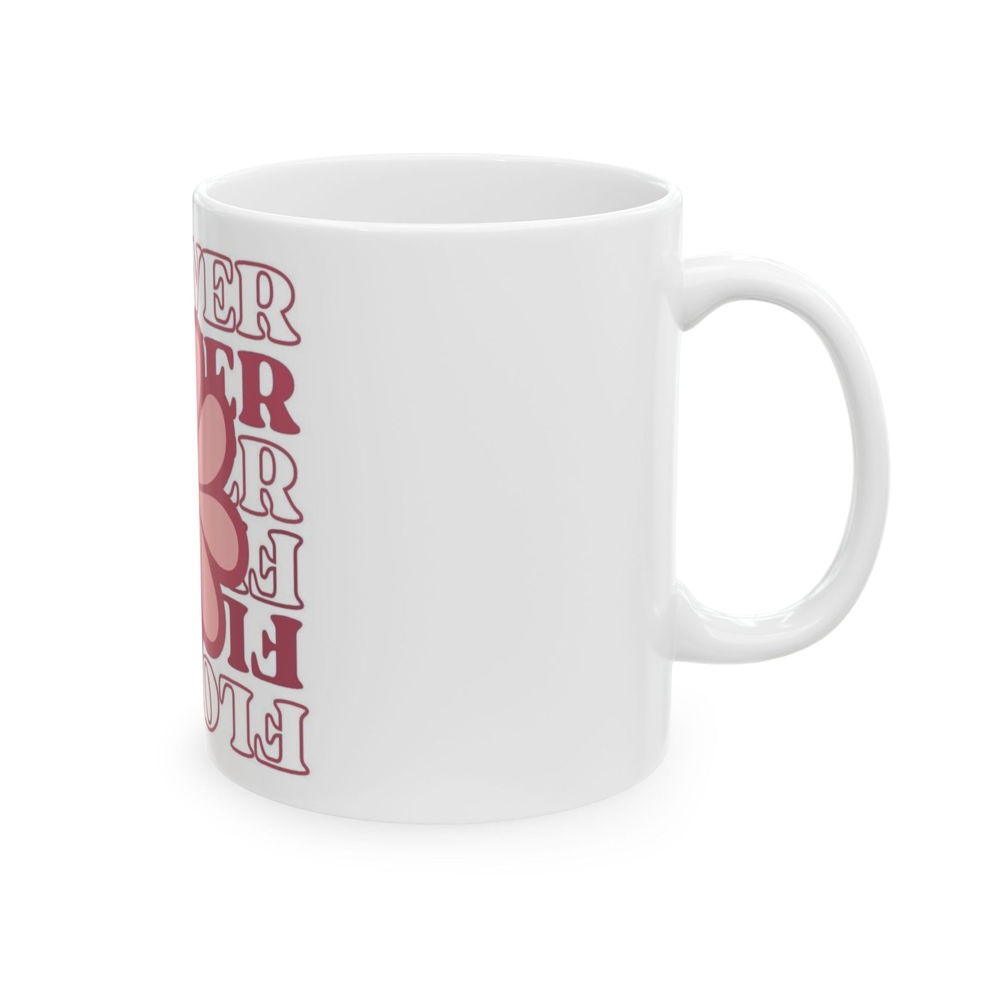 Retro Flower Ceramic Mug - Coffee Lover Gift, Floral Kitchen Decor, Fun Tea Mug, 70s Inspired Drinkware, Unique Birthday Present