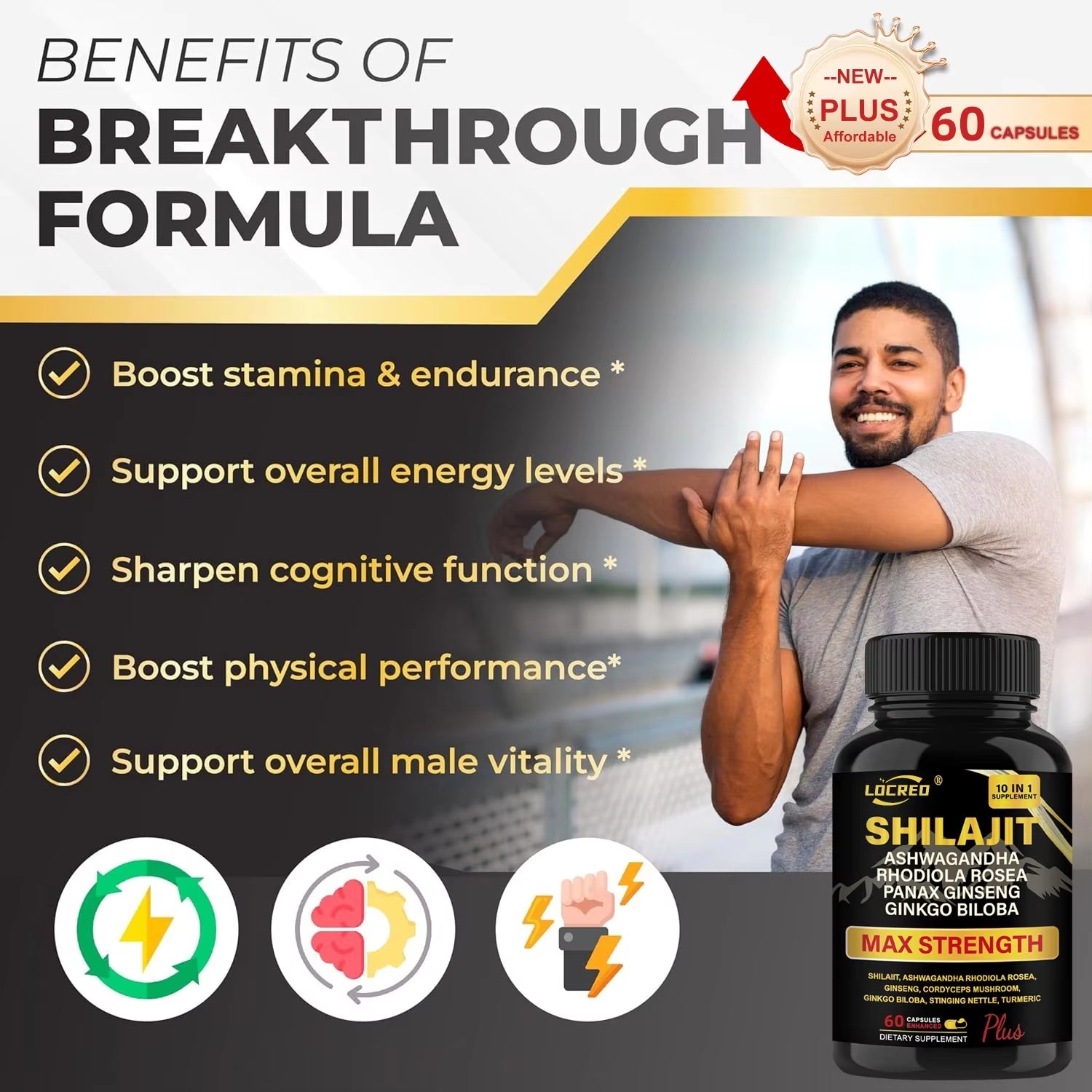 Shilajit Capsules Ashwagandha Extra Strength Dietary Supplement 60 Capsules